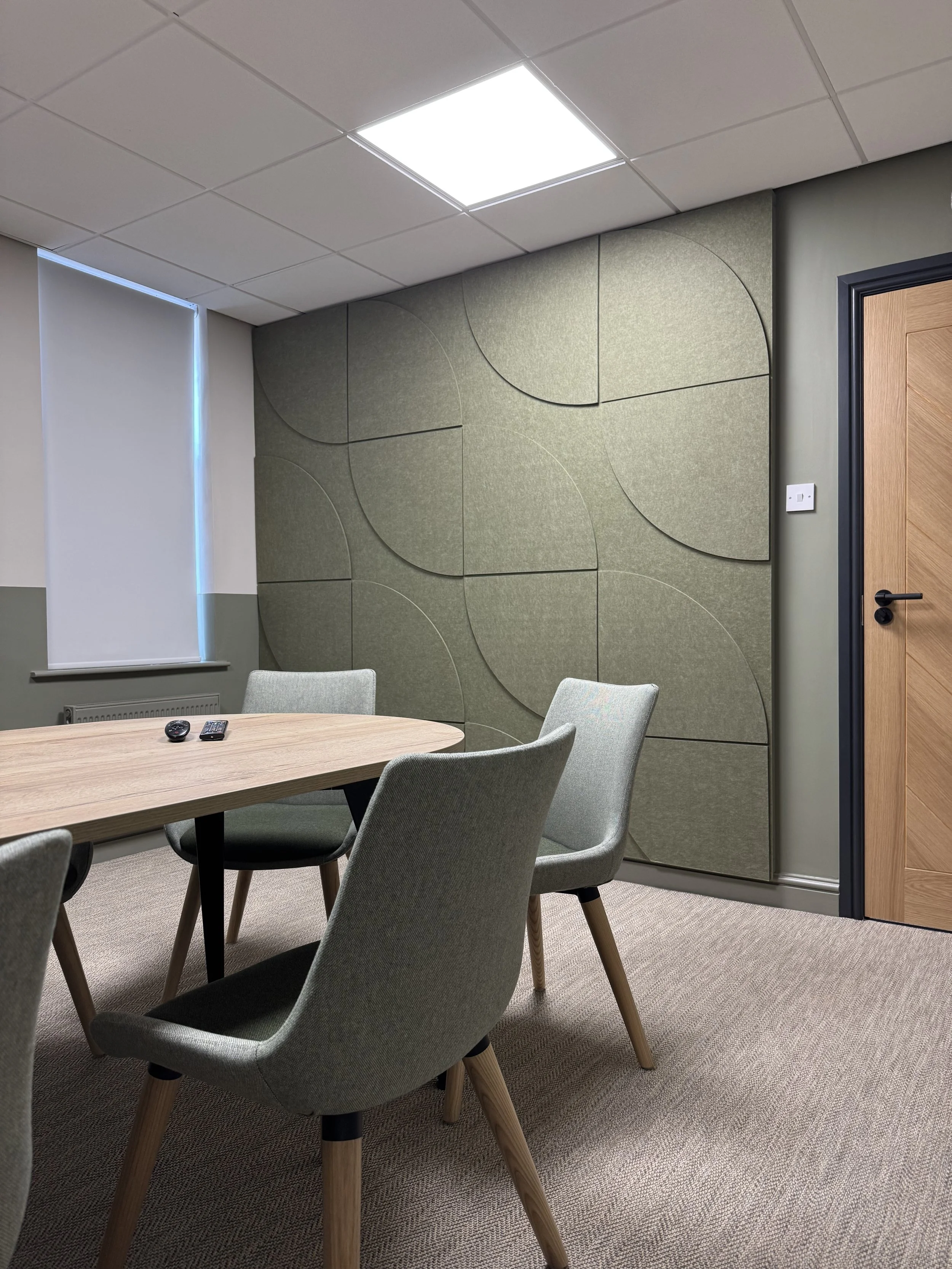 From acoustic wall treatments and subtle branding elements to refined finishes, every detail reinforces Morton Baxter’s polished and professional identity.